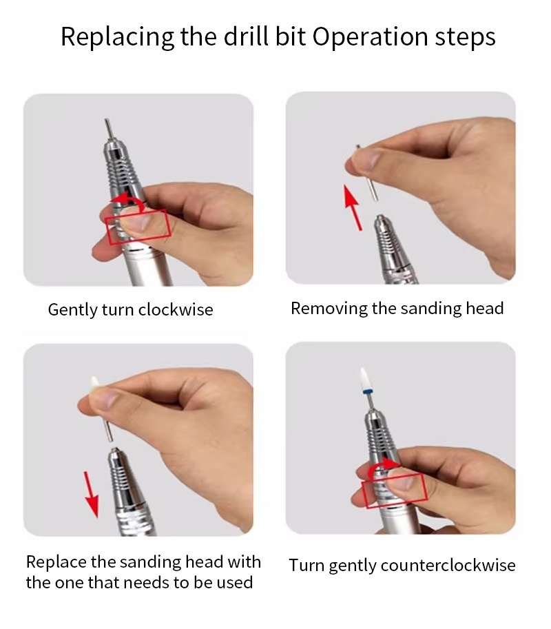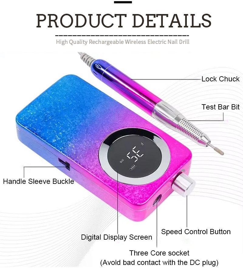 Denne 30.000 rpm elektriske sømboremaskine har 2 farver at vælge imellem, sort/hvid/grå/blå/rød/pink/orange, farverige farver.