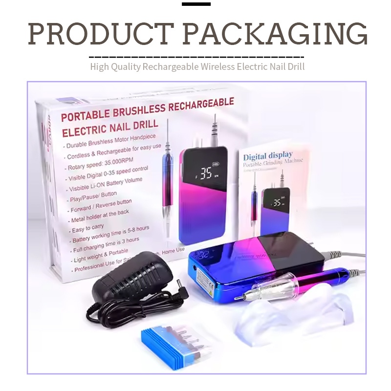 Indholdet af denne 30.000 rpm elektriske sømborepakke har et slibepenprodukt, et USB-opladningskabel, en produktbrugsanvisning og en letvægts og bærbar boks.