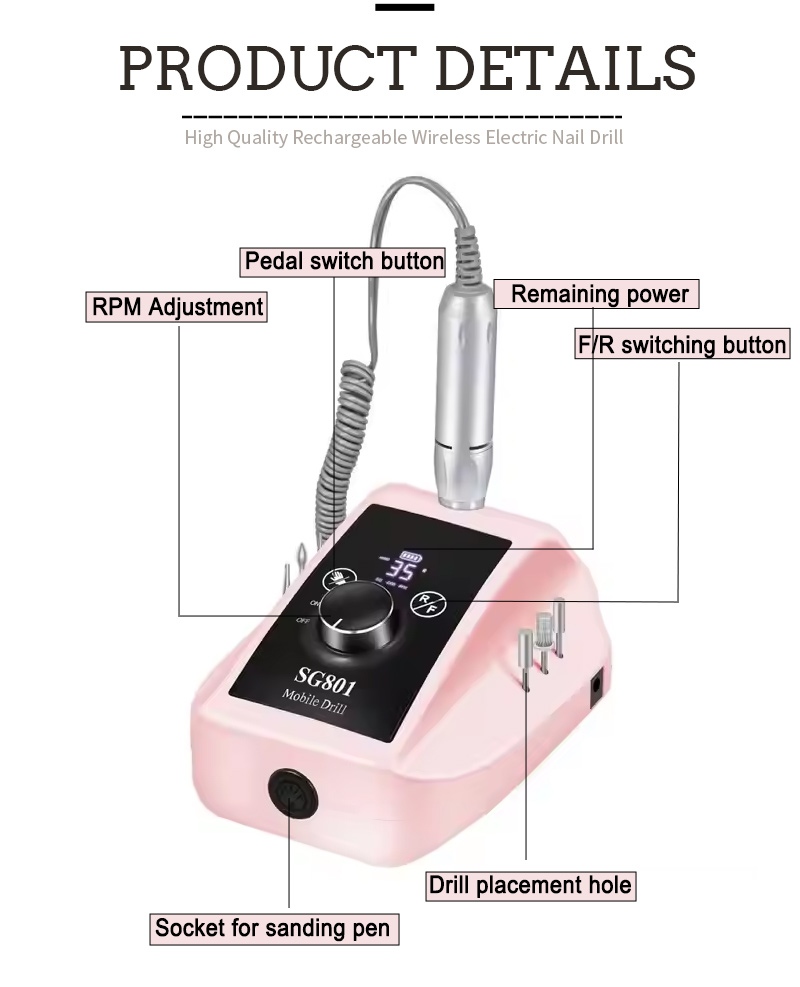 | 35.000 RPM elektrisk bærbar gel-neglebor detaljer |