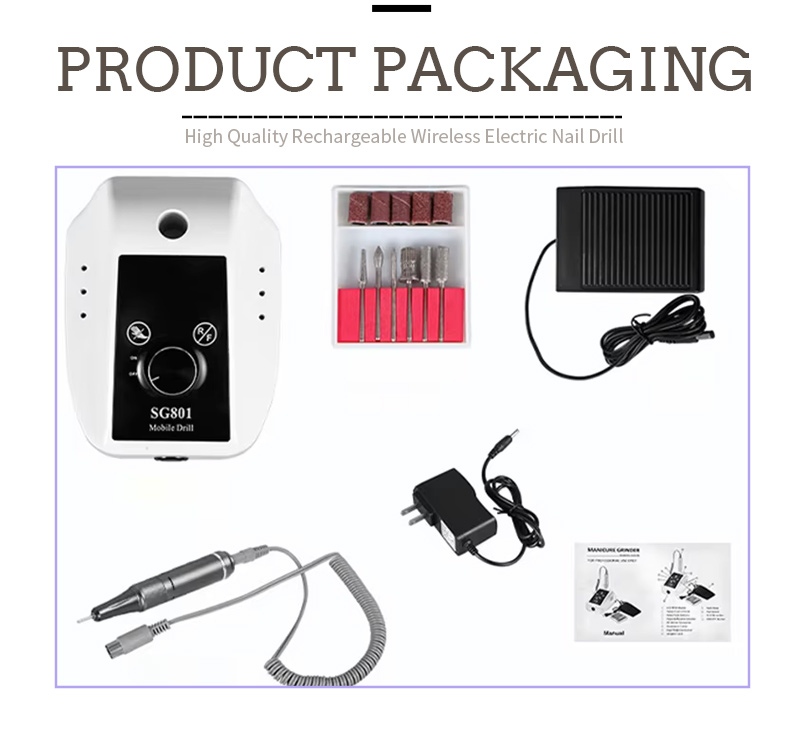 Indholdet af denne 35.000 rpm elektriske bærbare gel-negleborepakke har et slibepenprodukt, et USB-opladningskabel, en produktbrugsanvisning og en letvægts og bærbar boks.