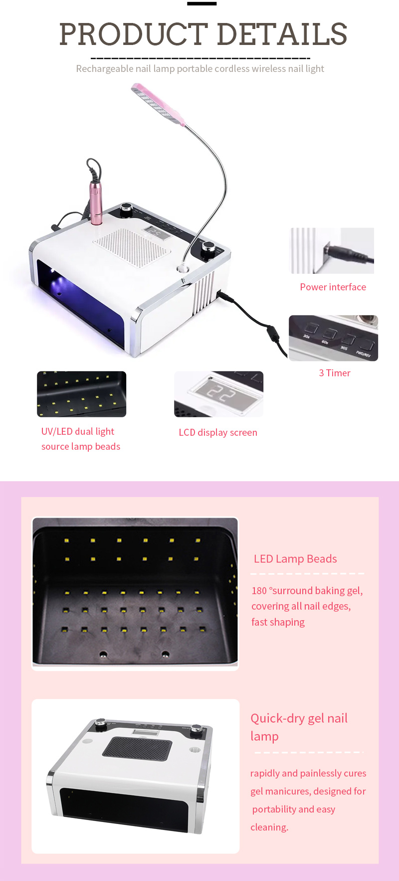 4-i-1 multifunktions neglelampe sikrer en jævn limtørring uden at krympe. Dens dobbelte lyskilder giver skånsom opvarmning for at forhindre misfarvning af hænder og anstrengte øjne, velegnet til både hænder og fødder, hvilket giver bemærkelsesværdigt hurtigttørrende resultater.