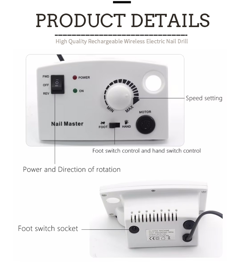 Produktfunktioner og applikationer af den 602 højhastighed på 30.000 o / min elektrisk neglefil til fjernelse af neglelak