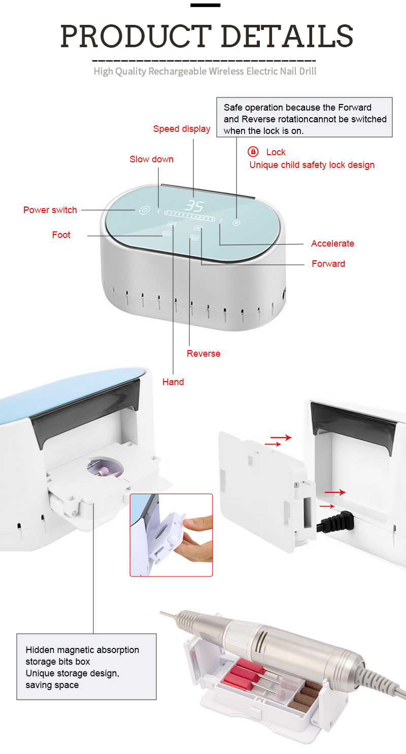 Produktfunktioner og anvendelser af den 217 højhastigheds 35000 o / min elektrisk neglefil til fjernelse af polsk