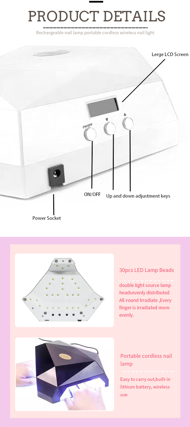 Produktet sikrer endda limtørring uden krympning. Dens dobbelte lyskilder giver blid opvarmning for at forhindre misfarvning og øjenbelastning, der er egnet til både hænder og fødder, hvilket leverer bemærkelsesværdigt hurtige tørringsresultater.