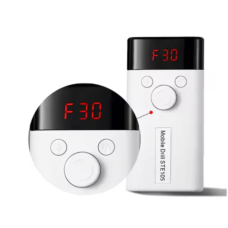 Displaydesignet på denne elektriske neglepolerer 30.000 rpm har en tænd/sluk-knap og frem/tilbage-drejning for i alt én-knaps aktivering, en hurtigopladningsstik i bunden, en udskiftelig borebøsning øverst og en tre-positions justerbar hastighed for at imødekomme en række forskellige behov.