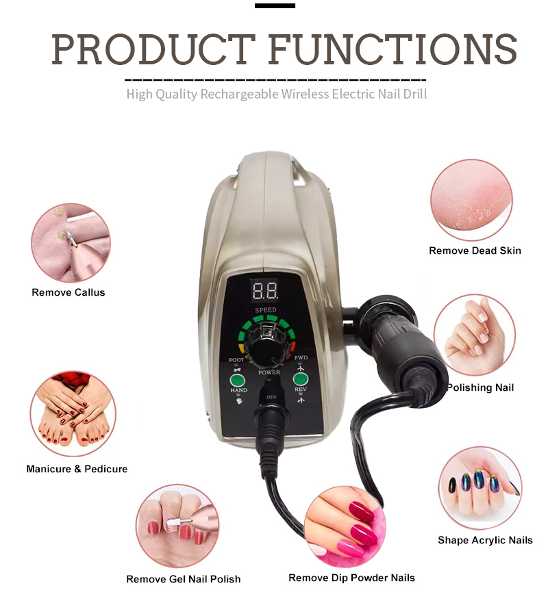 Produktfunktioner og applikationer af DM-014A højhastigheds 35.000 o / min elektrisk neglefil til fjernelse af neglelak