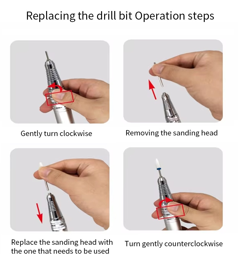 Denne håndholdte udskiftningsmetode til neglebore- og polermaskine, det vil sige plug og træk ud, let og bekvem, udskiftning kan bruges efter færdiggørelsen.