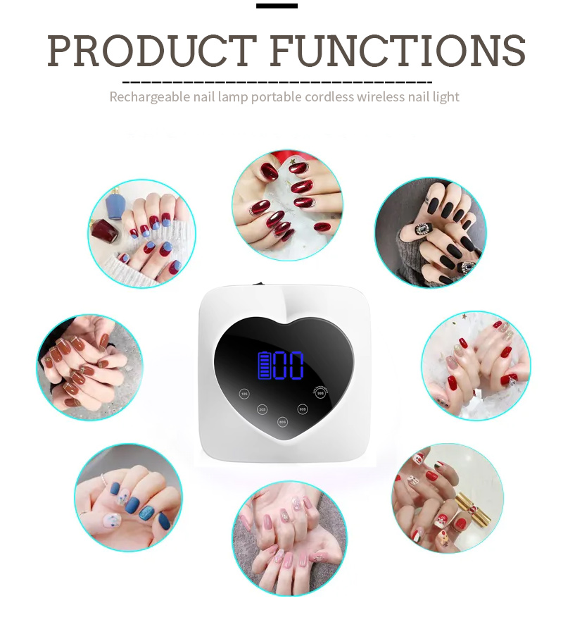 Produktet sikrer endda limtørring uden krympning. Dens dobbelte lyskilder giver blid opvarmning for at forhindre misfarvning og øjenbelastning, der er egnet til både hænder og fødder, hvilket leverer bemærkelsesværdigt hurtige tørringsresultater.