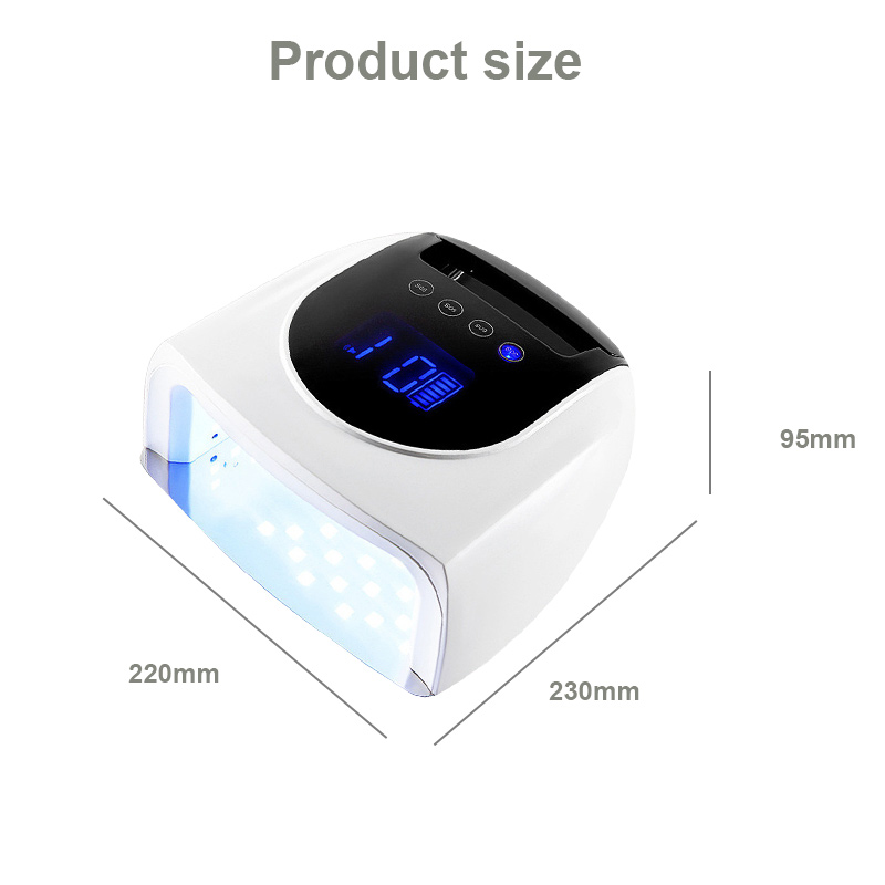 Produktet sikrer en jævn limtørring uden krympning. Dens dobbelte lyskilder giver skånsom opvarmning for at forhindre misfarvning af hænder og anstrengte øjne, velegnet til både hænder og fødder, hvilket giver bemærkelsesværdigt hurtigttørrende resultater.