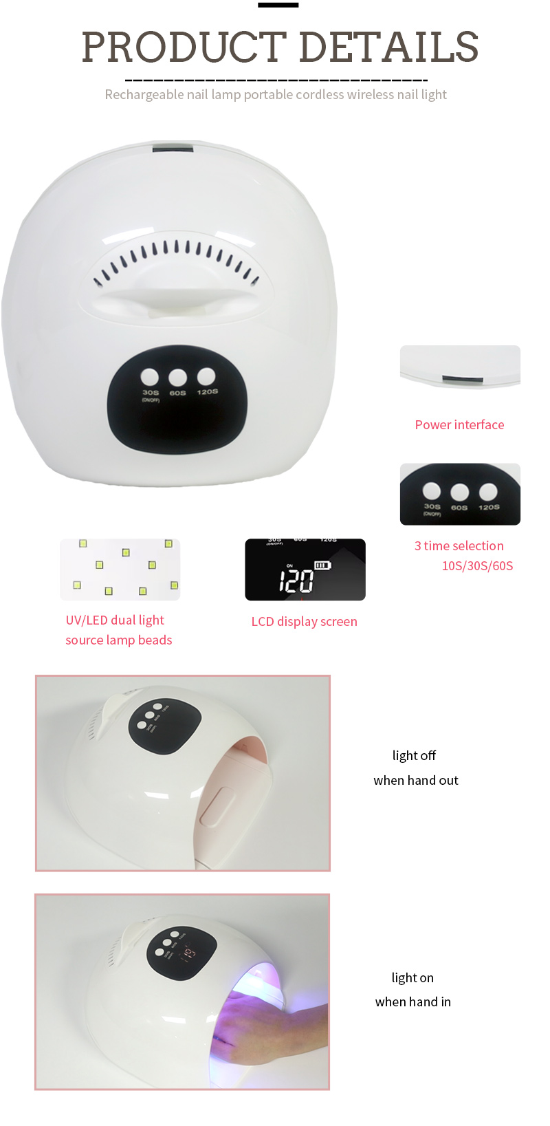 Produktet sikrer en jævn limtørring uden krympning. Dens dobbelte lyskilder giver skånsom opvarmning for at forhindre misfarvning af hænder og anstrengte øjne, velegnet til både hænder og fødder, hvilket giver bemærkelsesværdigt hurtigttørrende resultater.