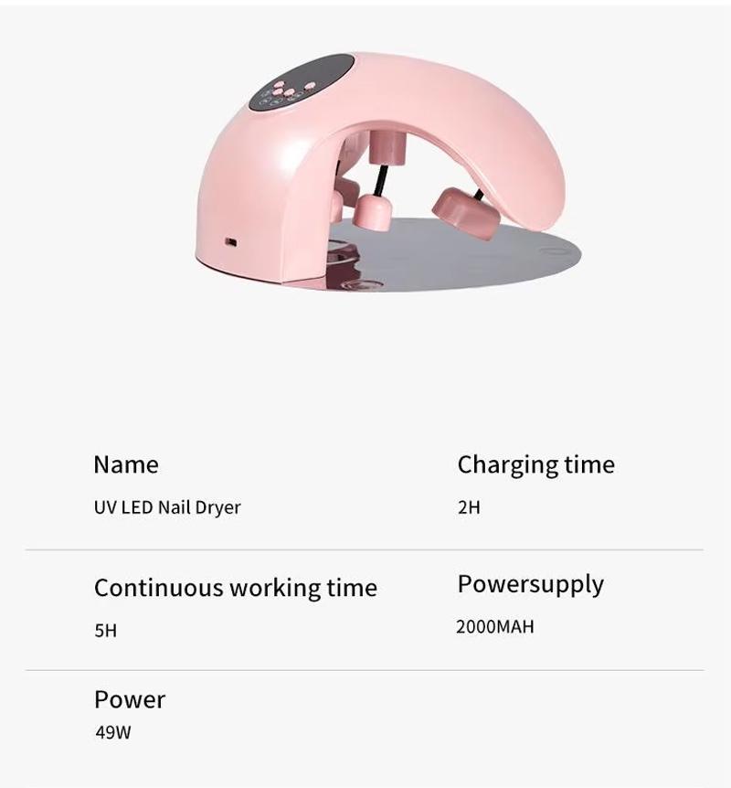 2)Genopladelig negletørrer lampe trådløs med hjerteform 72W high-definition LCD-skærm, uafhængig strømskærm, du kan observere strømforbruget når som helst for at løse besværet med at gå ud.