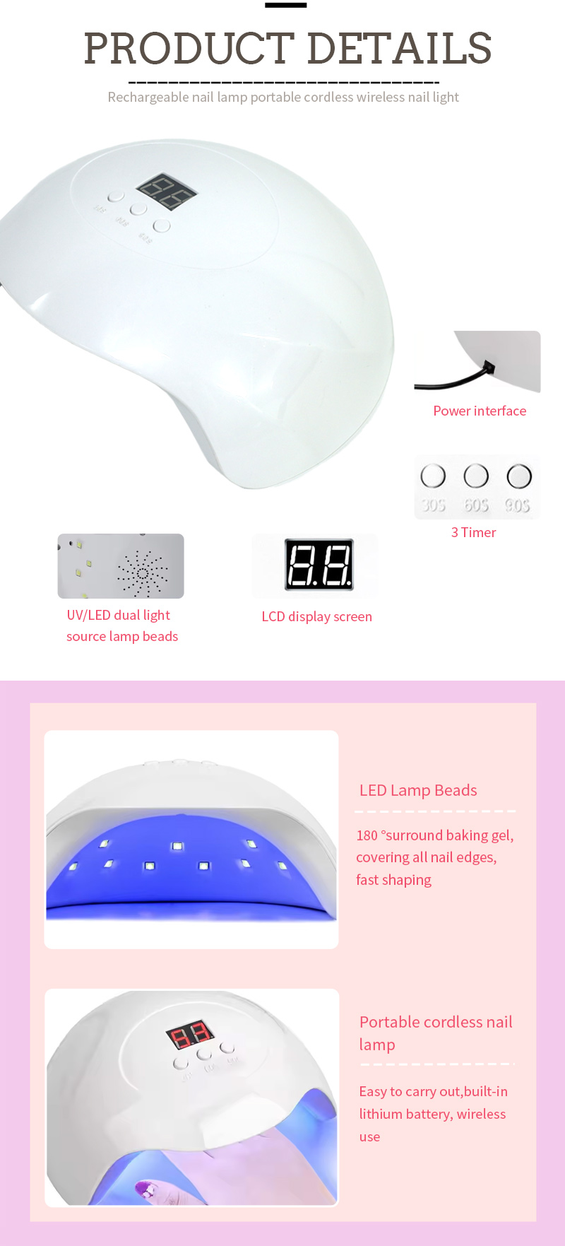 Produktet sikrer endda limtørring uden krympning. Dens dobbelte lyskilder giver blid opvarmning for at forhindre misfarvning og øjenbelastning, der er egnet til både hænder og fødder, hvilket leverer bemærkelsesværdigt hurtige tørringsresultater.