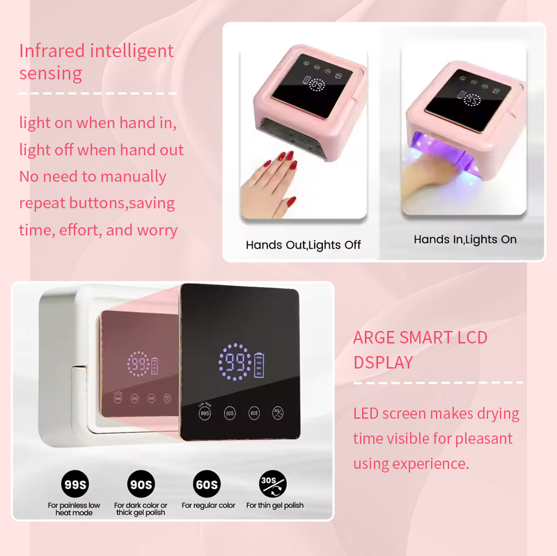 Denne højkvalitets gel neglelak hurtigtørrende lampe sikrer en jævn limtørring uden at krympe. Dens dobbelte lyskilder giver skånsom opvarmning for at forhindre misfarvning af hænder og anstrengte øjne, velegnet til både hænder og fødder, hvilket giver bemærkelsesværdigt hurtigttørrende resultater.
