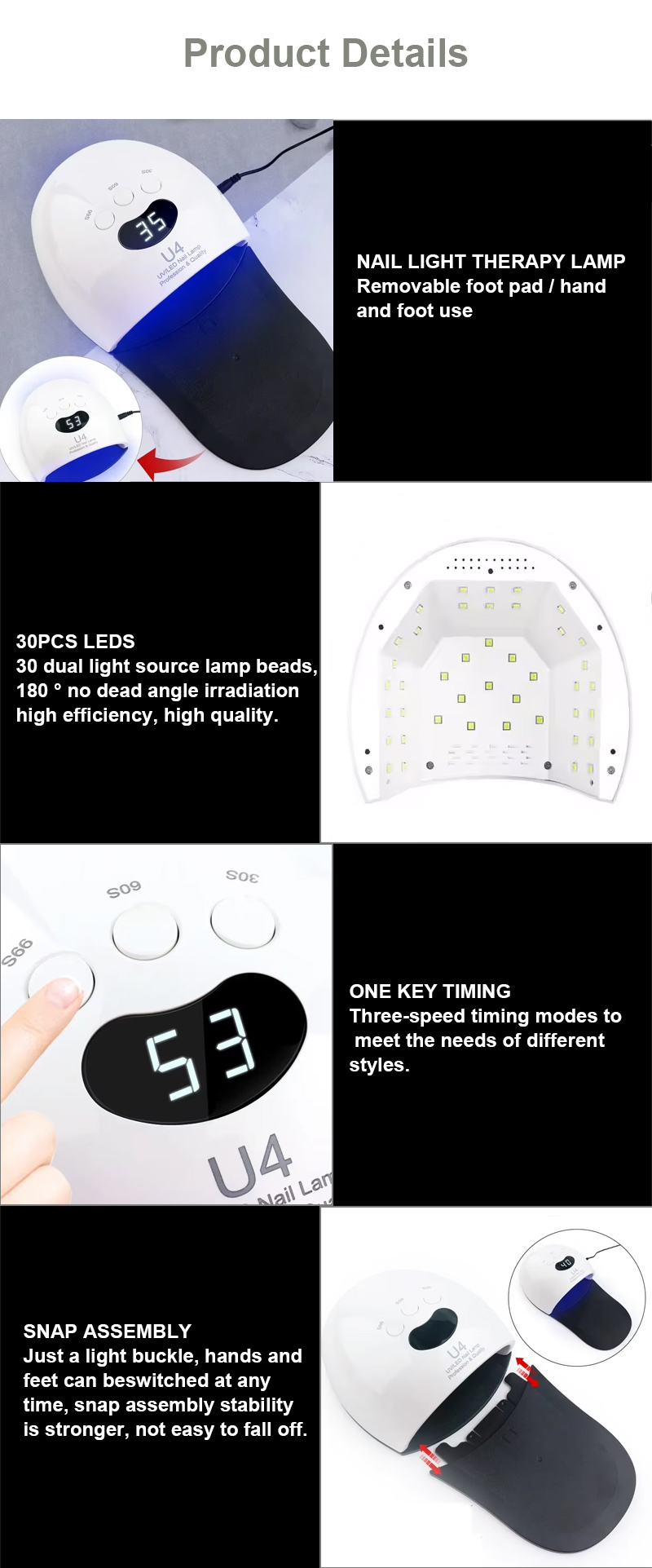 Vores vigtigste produkter omfatter LED-sømlamper: 186W/168W/86W/84W/80W/75W/72W/65W/60W/54W/50W/48W/36W/24W/16W/12W/6W/3W osv. Genopladelige trådløse modeller: 156W/120W/96W/90W/86W/84W/80W/72W/66W/64W/60W/54W/48W osv. Nail art-bor:80W/65W/60W/45W/35W/25W/15W osv. Trådløs opladning modeller: 35,3,3,0 25W, 20W, 15W osv. 25000RPM/30000RPM/35000RPM/40000RPM/45000RPM/Brushless/Ultra-high-speed børsteløs. Fuld støvsamler. 80W/68W/60W/48W/45W/40W/36W/30W/25W/20W/15W/6W osv., Trådløse opladningsmodeller: 80W, 60W, 40W, 30W.