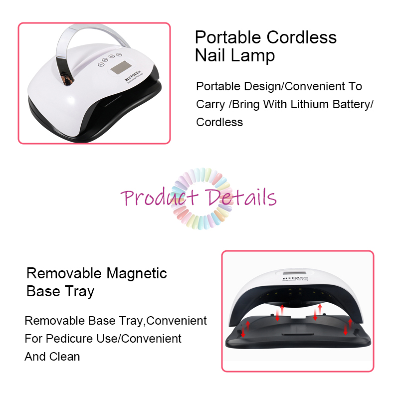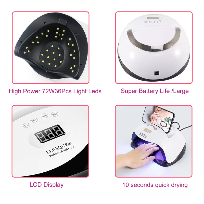 Den højkvalitets neglelampe med timerfunktion sikrer en jævn limtørring uden at krympe. Dens dobbelte lyskilder giver skånsom opvarmning for at forhindre misfarvning af hænder og anstrengte øjne, velegnet til både hænder og fødder, hvilket giver bemærkelsesværdigt hurtigttørrende resultater.