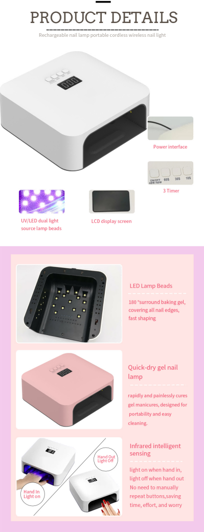 Shenzhen Ruina Optoelectronics Co., Ltd., som Kinas førende producent, leverandør og eksportør af højkvalitets hurtigtørrende neglelampe, opretholder konsekvent filosofien om at forfølge perfekt kvalitet. Denne forpligtelse har givet vores højkvalitets hurtigtørrende neglelampe tillid hos adskillige kunder. Enestående design, førsteklasses råmaterialer, enestående ydeevne og yderst konkurrencedygtige priser – det er præcis, hvad enhver kunde forventer, og hvad vi leverer. Selvfølgelig er omfattende eftersalgsservice lige så uundværlig.