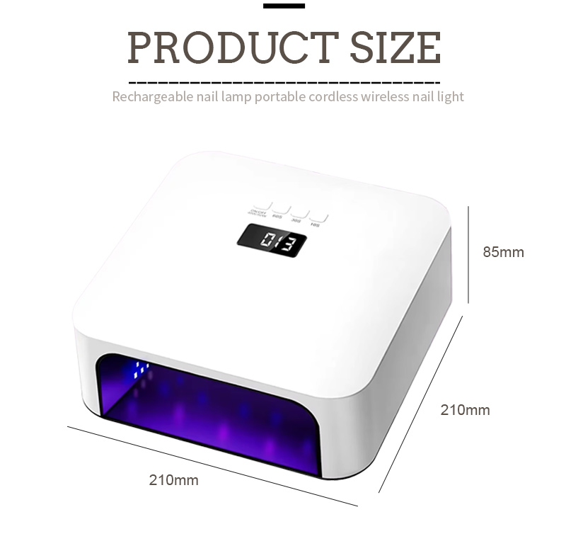 Dimensionerne på denne højkvalitets hurtigtørrende neglelampe er 210 mm i længden, 210 mm i bredden og 85 mm i højden, med en stor kapacitet og mulighed for at bruge både hænder og fødder, hvilket er meget praktisk.