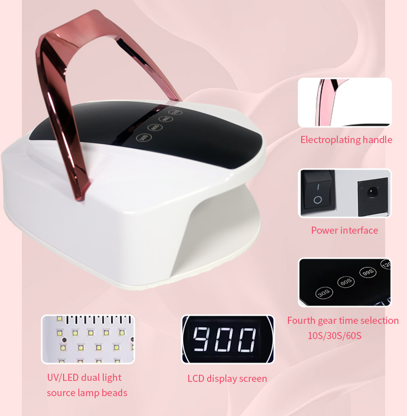 Produktet sikrer en jævn limtørring uden krympning. Dens dobbelte lyskilder giver skånsom opvarmning for at forhindre misfarvning af hænder og anstrengte øjne, velegnet til både hænder og fødder, hvilket giver bemærkelsesværdigt hurtigttørrende resultater.
