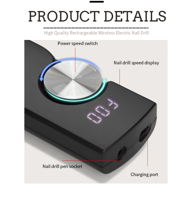Denne negleboremaskine er meget bærbar og meget let at bruge. Du kan indse, hvad du vil have ved at trykke på eller rotere hovedcontrolleren.