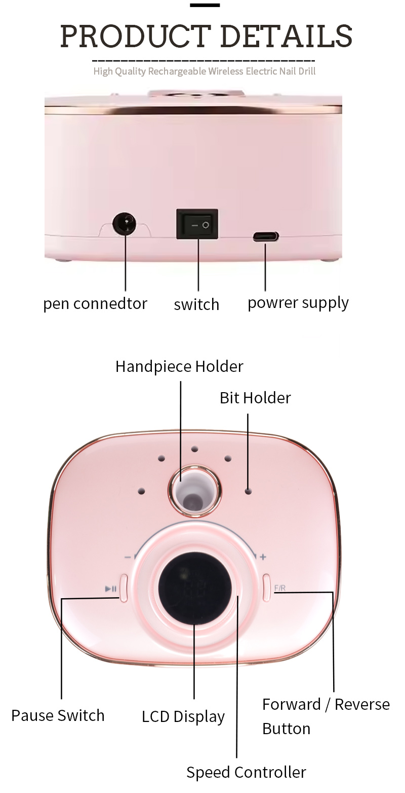 Genopladelig ledningsfri negleboremaskine Kraftig 45w 40000rpm