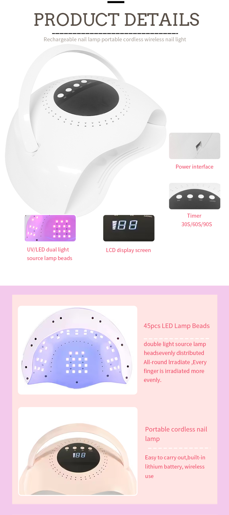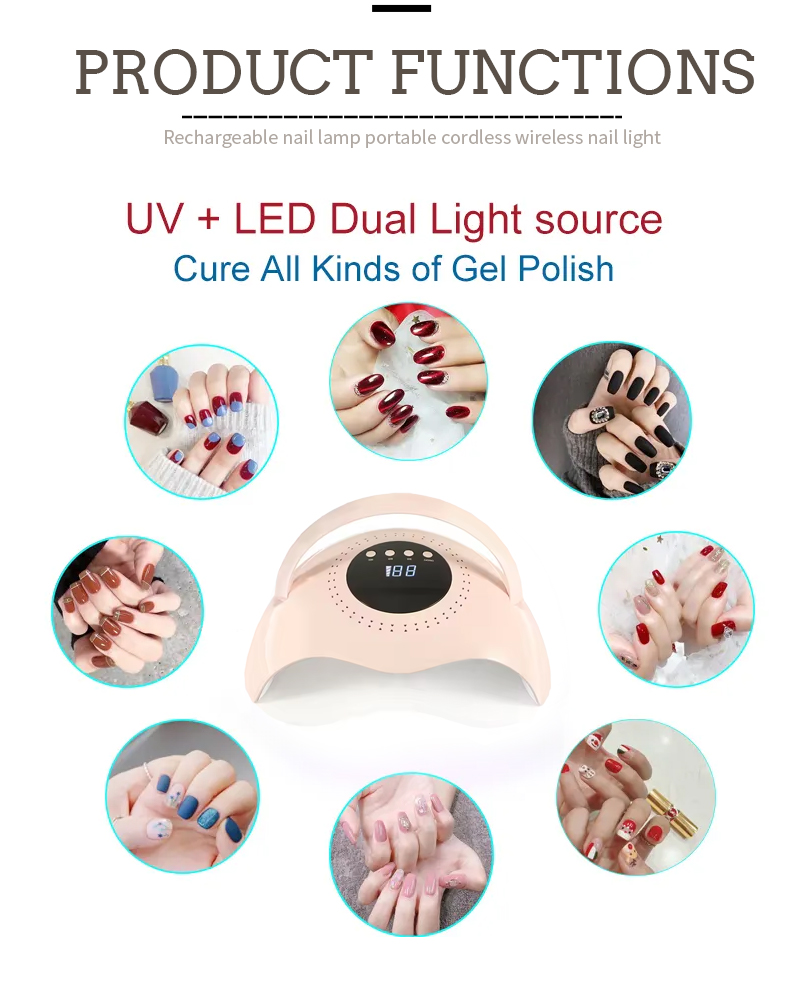 Produktet sikrer endda limtørring uden krympning. Dens dobbelte lyskilder giver blid opvarmning for at forhindre misfarvning og øjenbelastning, der er egnet til både hænder og fødder, hvilket leverer bemærkelsesværdigt hurtige tørringsresultater.