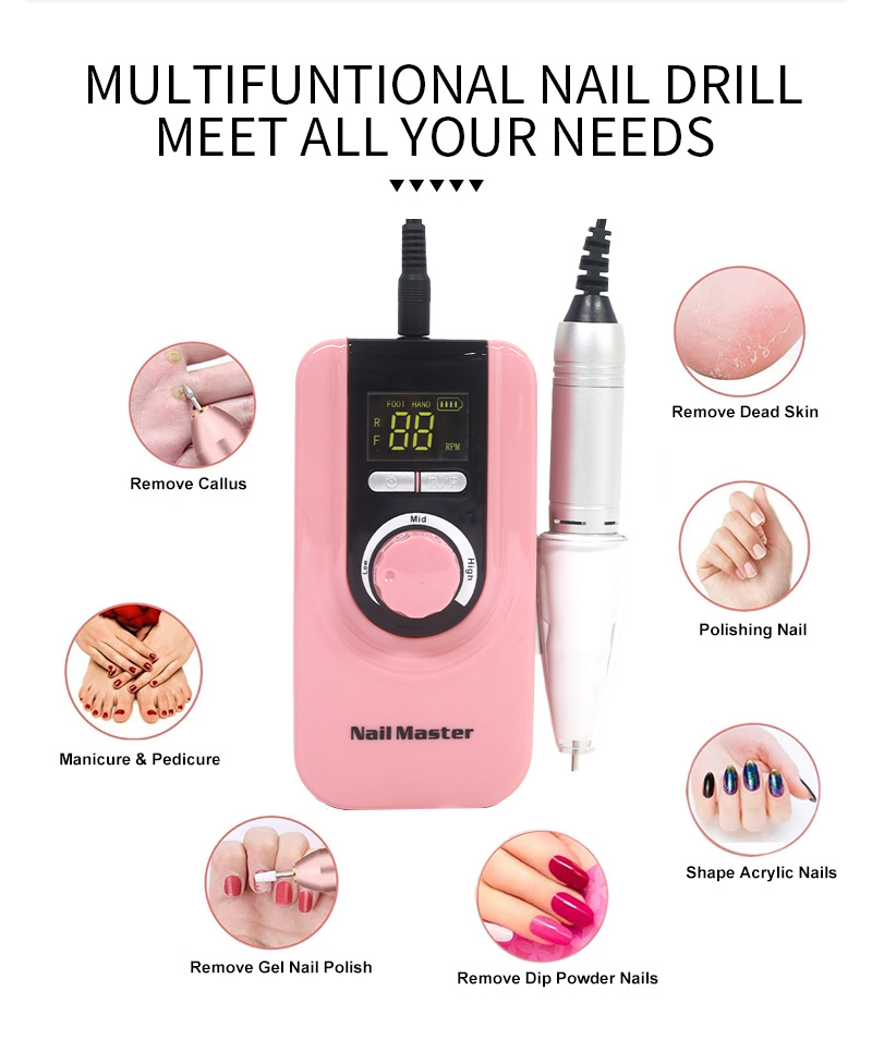 Negleboresæt elektrisk til fjernelse af gellak 65w 35000rpm