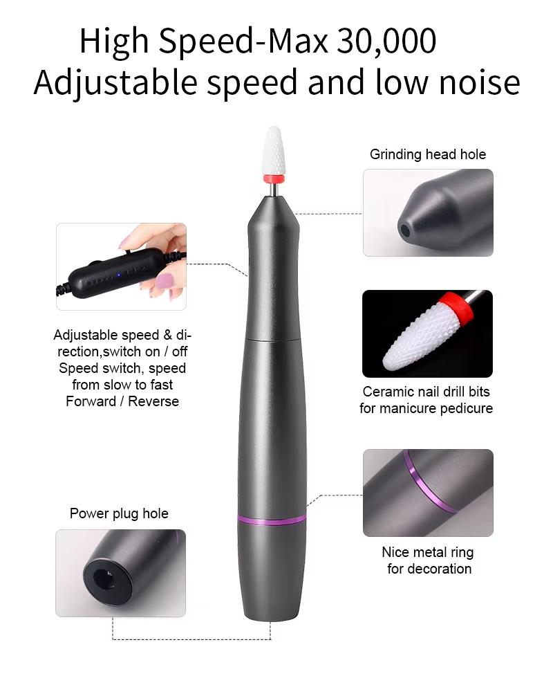 Produktegenskab og anvendelse af den støjsvage penformede nail art boremaskine