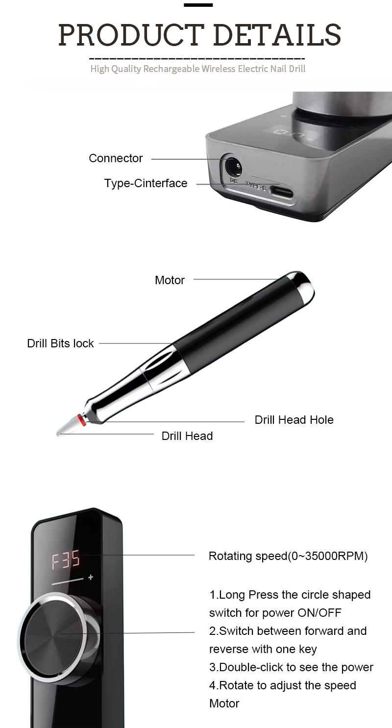 Produktfunktioner og applikationer af Model 109 Højhastigheds 35.000 o / min elektrisk neglefil til fjernelse af polsk