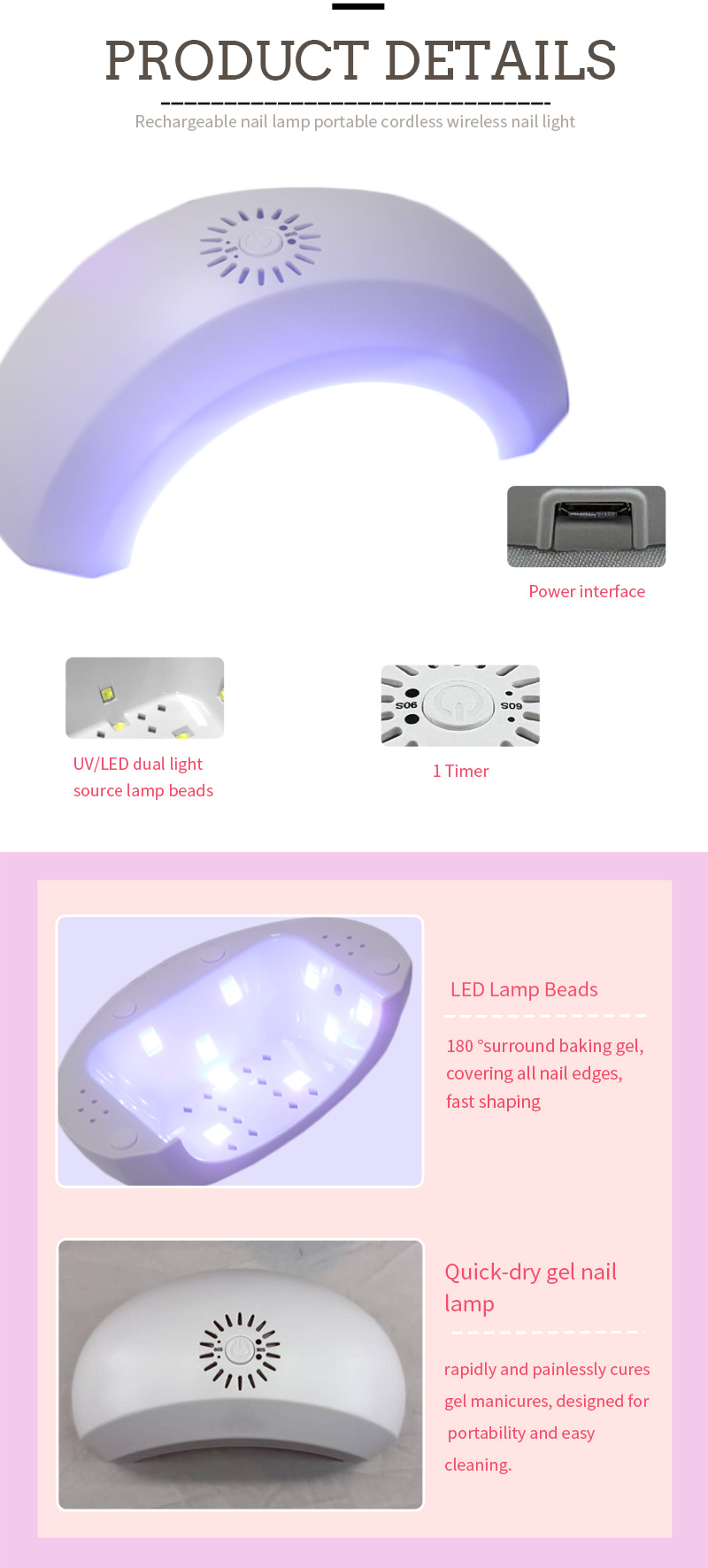 Produktet sikrer endda limtørring uden krympning. Dens dobbelte lyskilder giver blid opvarmning for at forhindre misfarvning og øjenbelastning, der er egnet til både hænder og fødder, hvilket leverer bemærkelsesværdigt hurtige tørringsresultater.