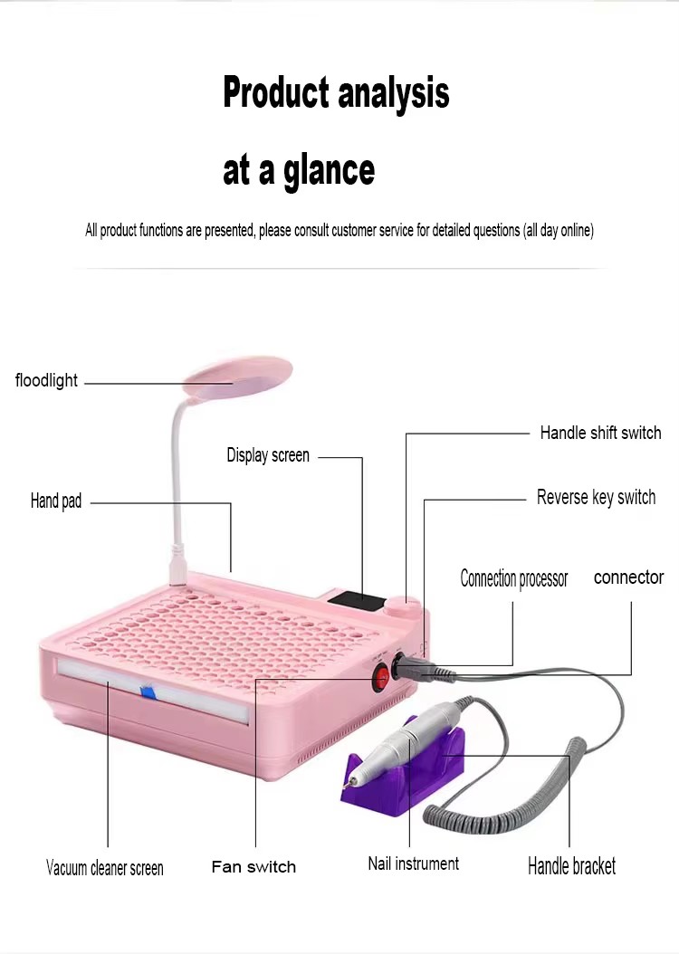 Detaljer om den multifunktionelle negleplejemaskine til støvsugning og fjernelse af alt-i-en