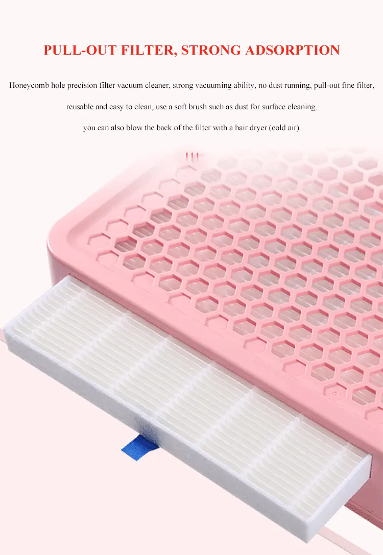 2)Produkt præcision filtre effektivt filtrere en række af negle støv død hud og andre urenheder, tætte filtre ikke lækker støv adsorption af støv evne.