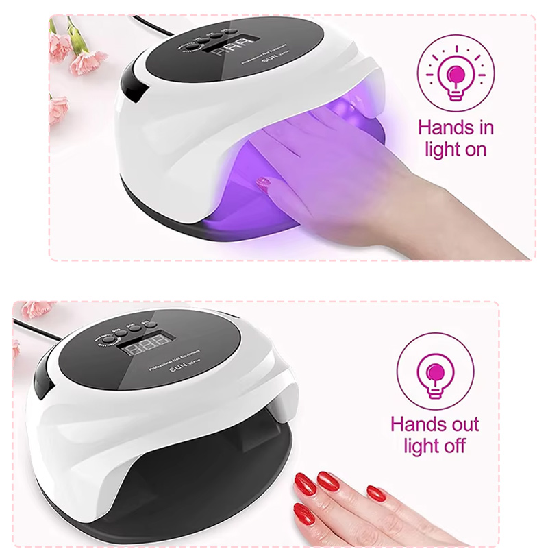 Produktet sikrer en jævn limtørring uden krympning. Dens dobbelte lyskilder giver skånsom opvarmning for at forhindre misfarvning af hænder og anstrengte øjne, velegnet til både hænder og fødder, hvilket giver bemærkelsesværdigt hurtigttørrende resultater.