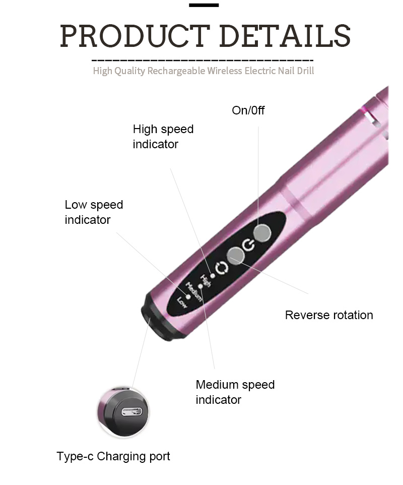 한국어Shenzhen Ruina Optoelectronic Co.,Ltd. en førende Kina Portable Pen-Style Nail File producent, leverandør og eksportør. At overholde stræben efter perfekt kvalitet af produkter, så vores 803 højhastigheds 35000 RPM neglelakfjerner elektrisk neglefil er blevet tilfredse af mange kunder. Ekstremt design, kvalitetsråvarer, høj ydeevne og konkurrencedygtig pris er, hvad enhver kunde ønsker, og det er også det, vi kan tilbyde dig. Selvfølgelig er vores perfekte eftersalgsservice også afgørende.