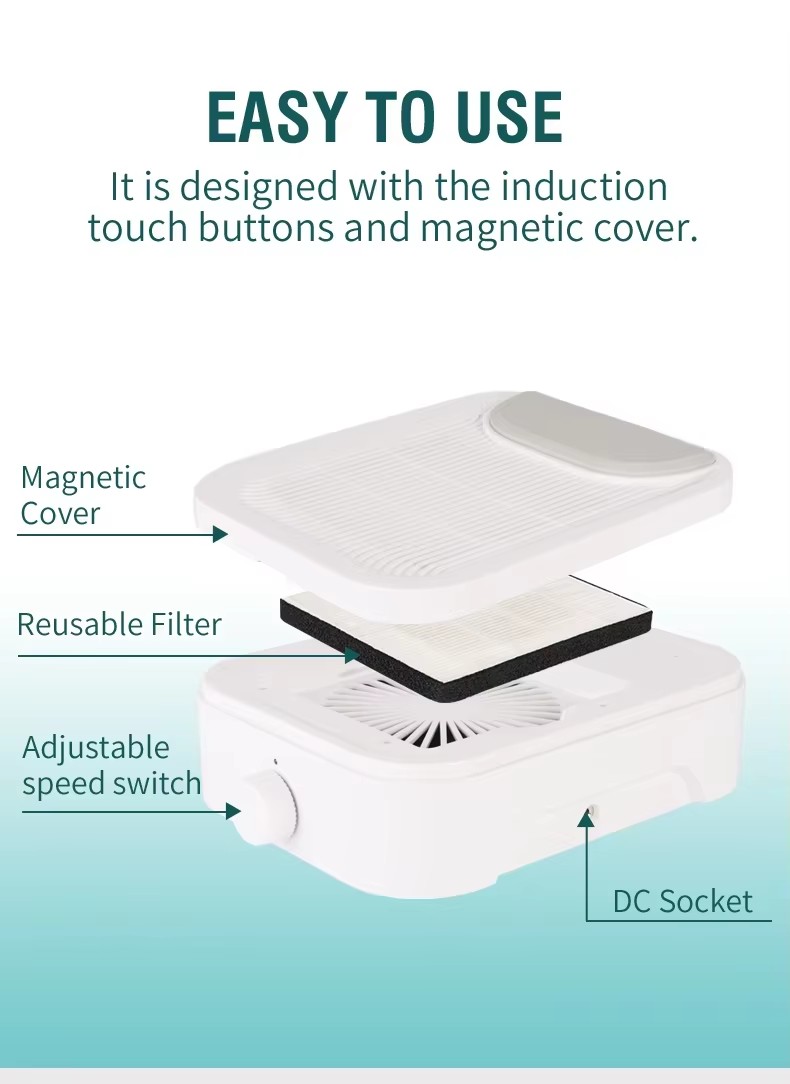 2)Produktpræcisionsfiltre filtrerer effektivt en række neglestøvdød hud og andre urenheder, tætte filtre lækker ikke støvadsorption af støvevne.