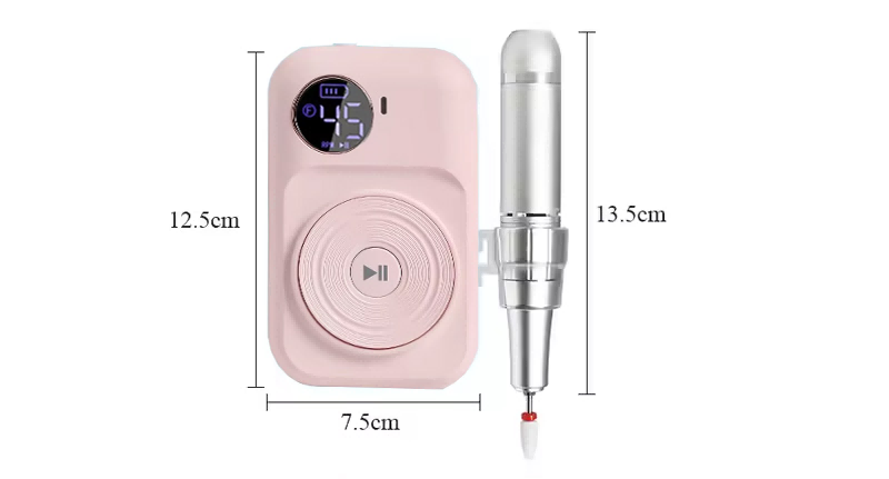 Denne førsteklasses støjsvage slibepen, power body størrelse længde er 125 mm, bredde er 75 mm, slibepen størrelse længde er 135 mm, kompakt krop let at bære, størrelsen af en mobiltelefon, ind i rygsækken tager ikke plads, nem at bære på kroppen.
