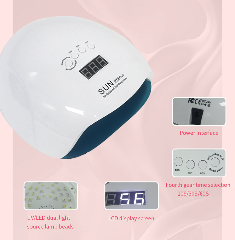 Produktet sikrer en jævn limtørring uden krympning. Dens dobbelte lyskilder giver skånsom opvarmning for at forhindre misfarvning af hænder og anstrengte øjne, velegnet til både hænder og fødder, hvilket giver bemærkelsesværdigt hurtigttørrende resultater.