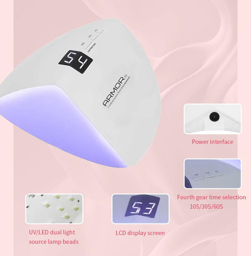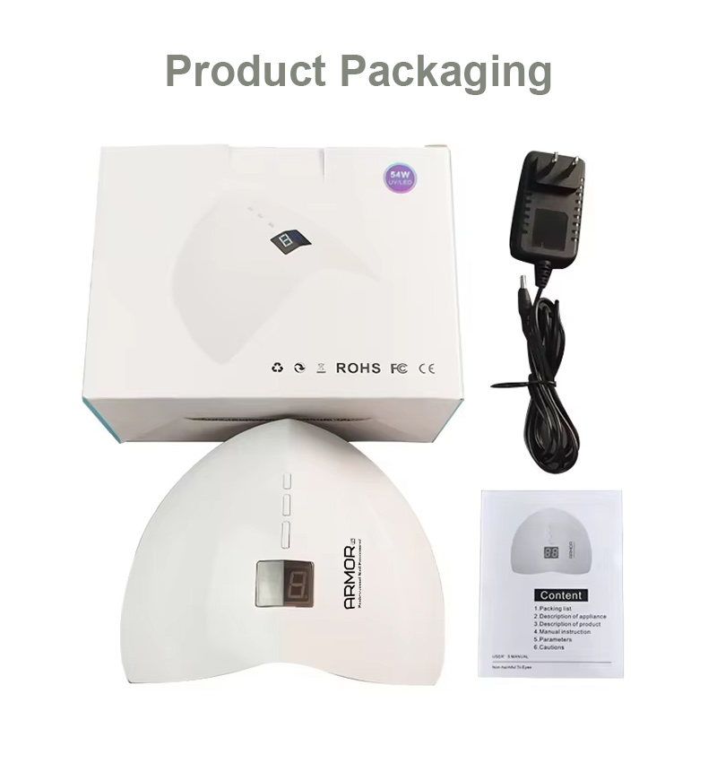 Produktet sikrer en jævn limtørring uden krympning. Dens dobbelte lyskilder giver skånsom opvarmning for at forhindre misfarvning af hænder og anstrengte øjne, velegnet til både hænder og fødder, hvilket giver bemærkelsesværdigt hurtigttørrende resultater.