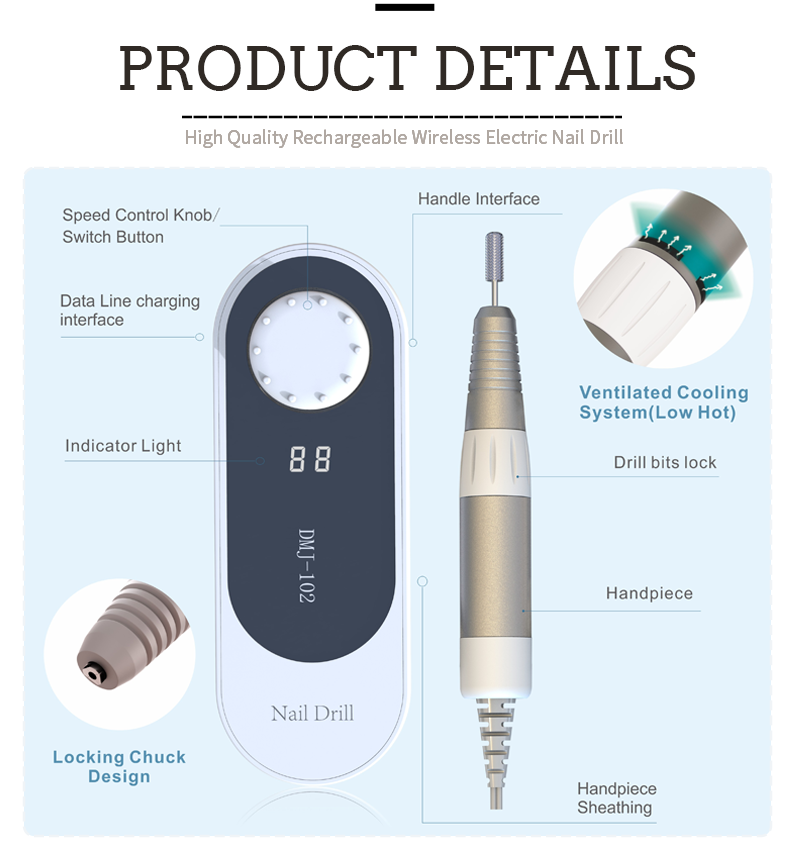 DMJ-102 højhastigheds 35.000 o / min elektrisk neglefil til polsk fjernelse: Funktioner og applikationer