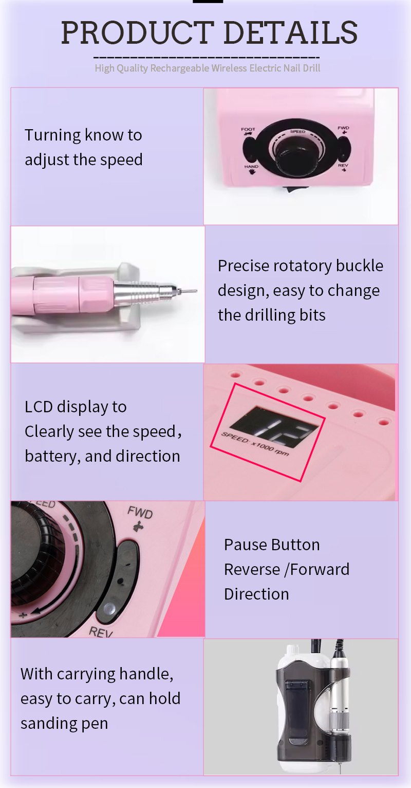 Som professionel producent er vi glade for at tilbyde tilpassede ZS-716 højhastigheds 35.000 o / min elektriske neglfiler til neglelak fjernelse. Vi leverer premium eftersalgsservice og rettidig levering. Denne model er en del af 202 -serien med negleplejningsværktøjer, der er egnede til at skabe akrylnegle, buffere negleoverflader og beskære kanter af personlige plejeprodukter. Konstrueret med præcision har den et elegant design, et behageligt greb og en motor i høj kvalitet, der fungerer stille.