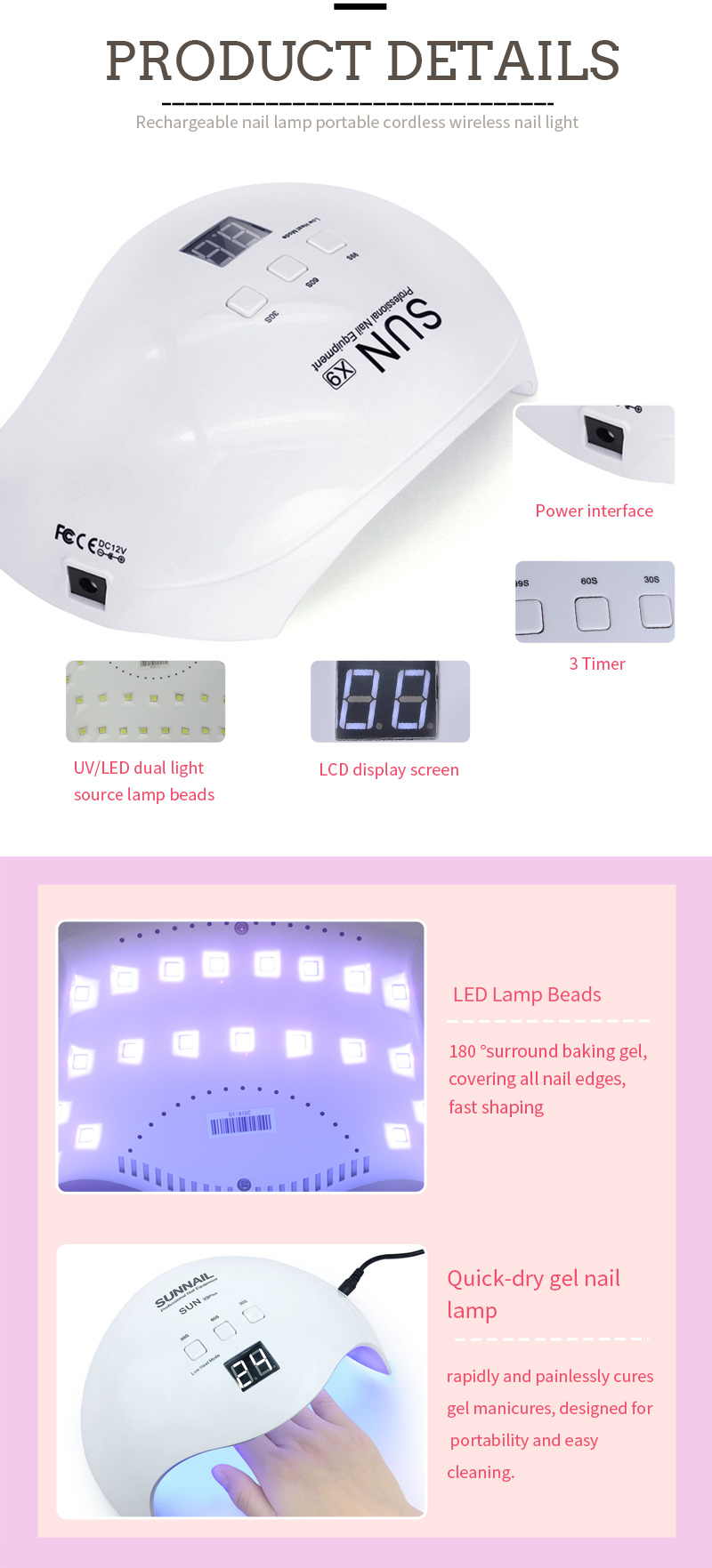 Produktet sikrer endda limtørring uden krympning. Dens dobbelte lyskilder giver blid opvarmning for at forhindre misfarvning og øjenbelastning, der er egnet til både hænder og fødder, hvilket leverer bemærkelsesværdigt hurtige tørringsresultater.